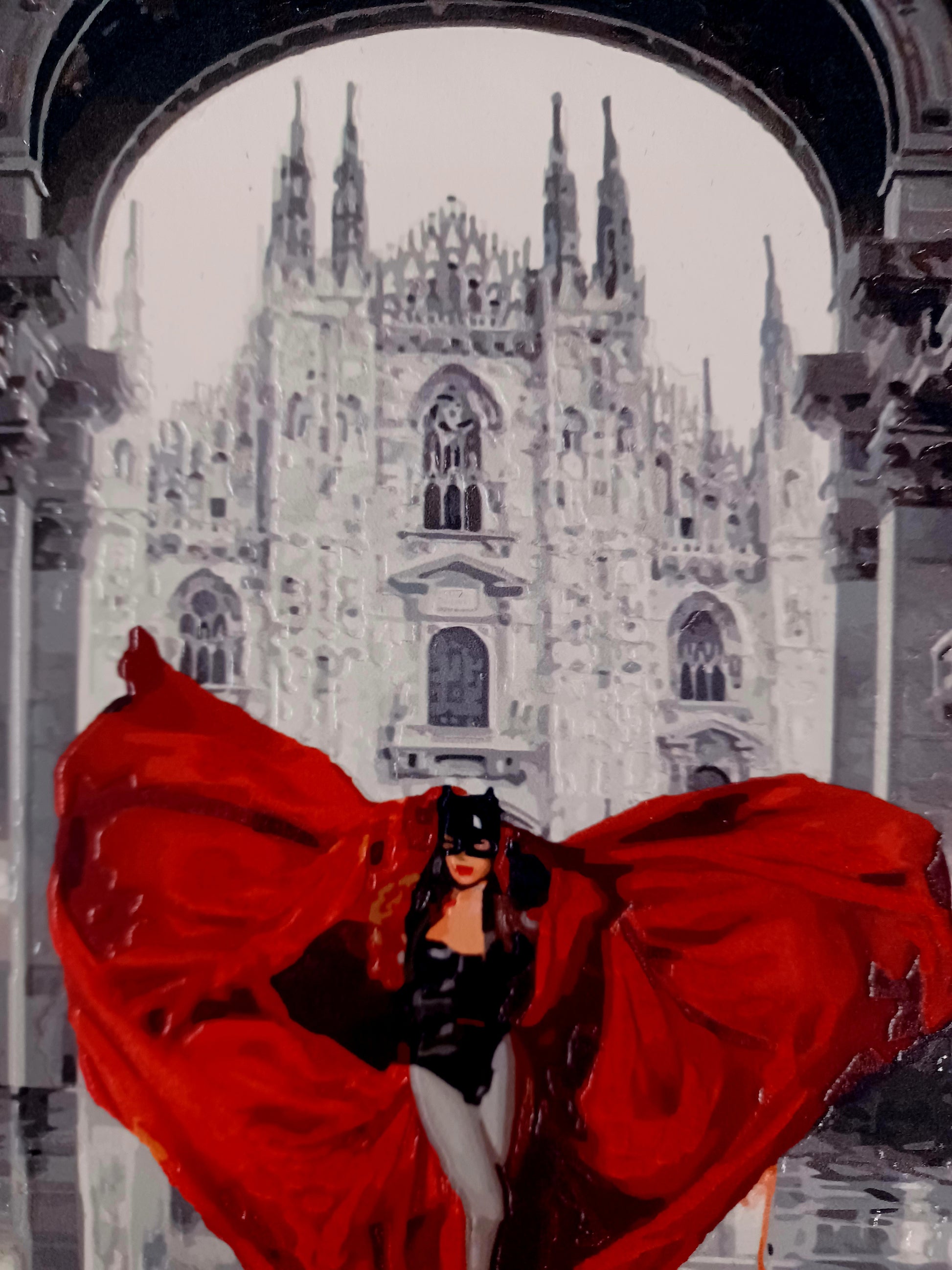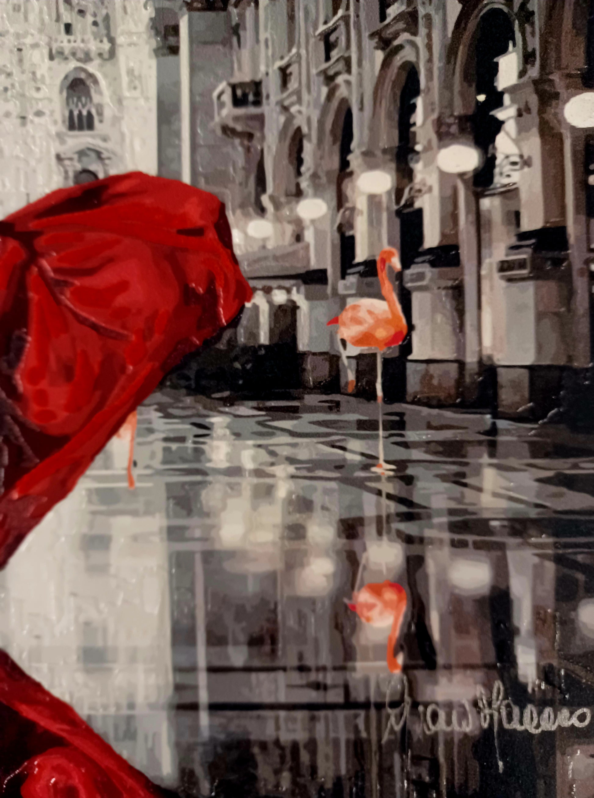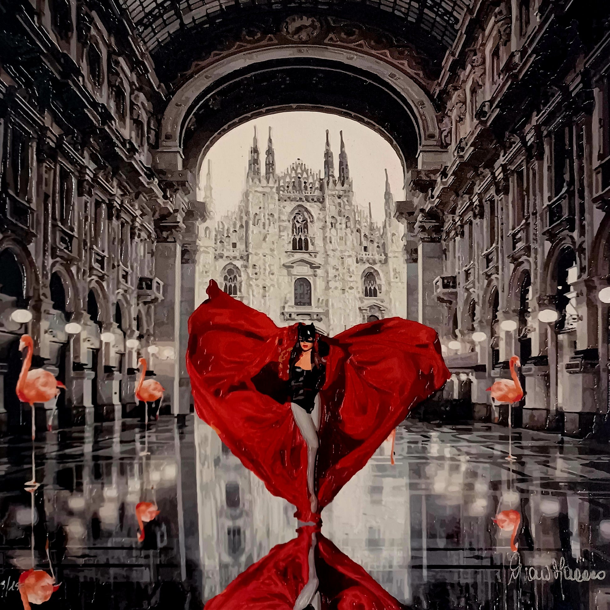 Serigrafia polimaterica e fine art glicèe con retouche, su cartoncino, 30x30 cm del maestro Gianni Moramarco dal titolo "Arriverò a Milano".