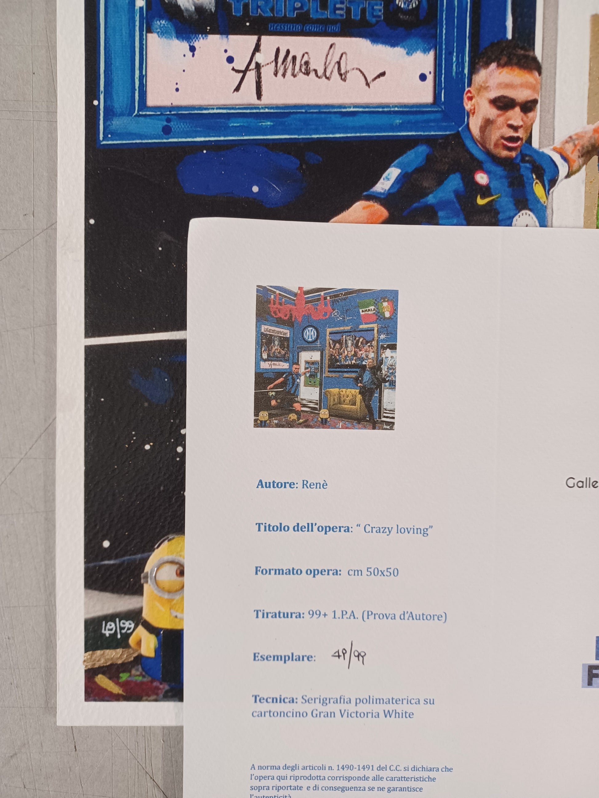 1. Renè | Crazy loving | Serigrafia polimaterica 50X50 cm | Inter